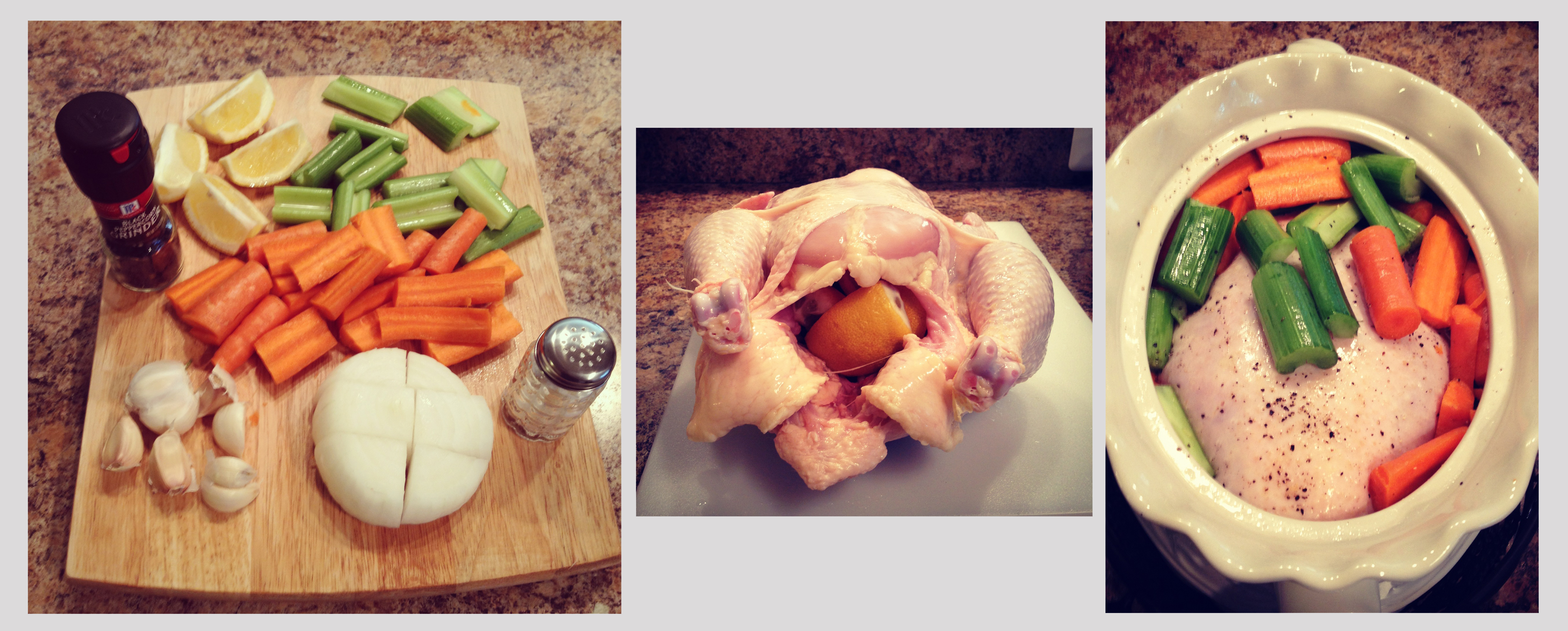Lemon, celery, carrot, onion, garlic, black pepper, and salt.